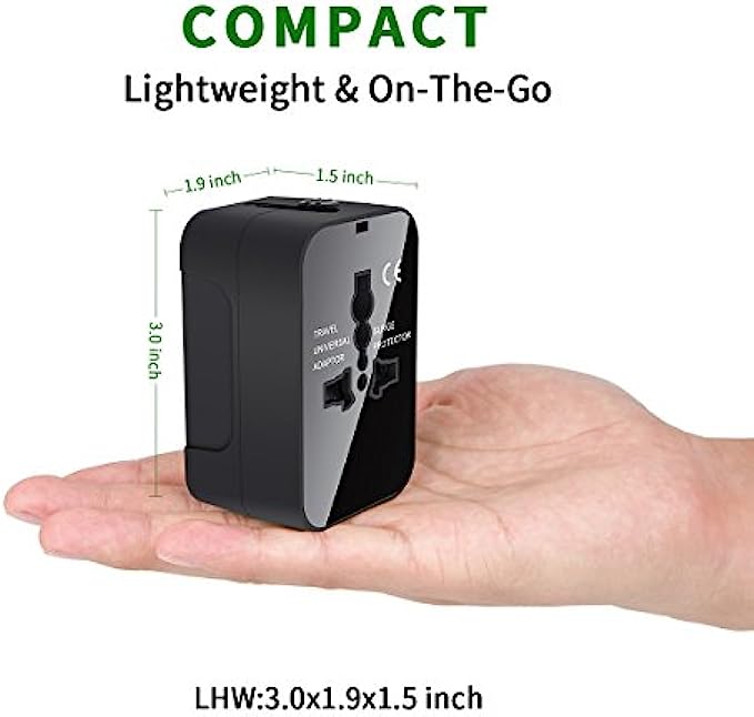 • UNIVERSAL WORLDWIDE CHARGING - This travel adapter Accepts Plugs from More than 150 Countries with US/EU/UK/AU european Plugs like Thailand, New Zealand, Israel, Italy, Rome, France, Spain, Canada, China, Australia, India, Hong Kong, Argentina, Peru, Korea, Asia, etc